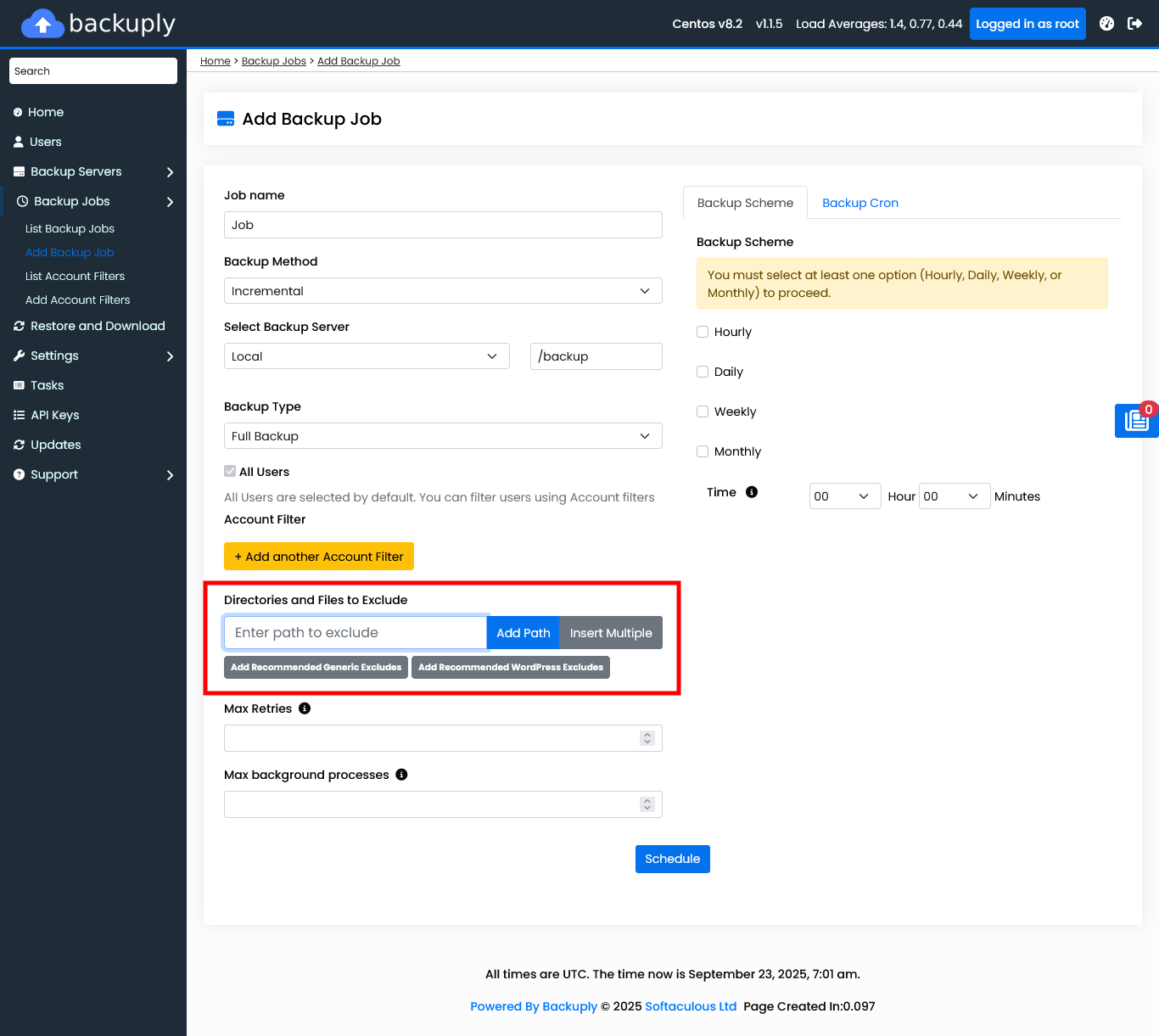 This guide will help you create a scheduled backup job in Backuply using the Admin Panel interface.