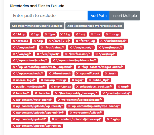 If you want to exclude predefined directories, click on Add Recommended Generic Excludes and Add Recommended WordPress Excludes.