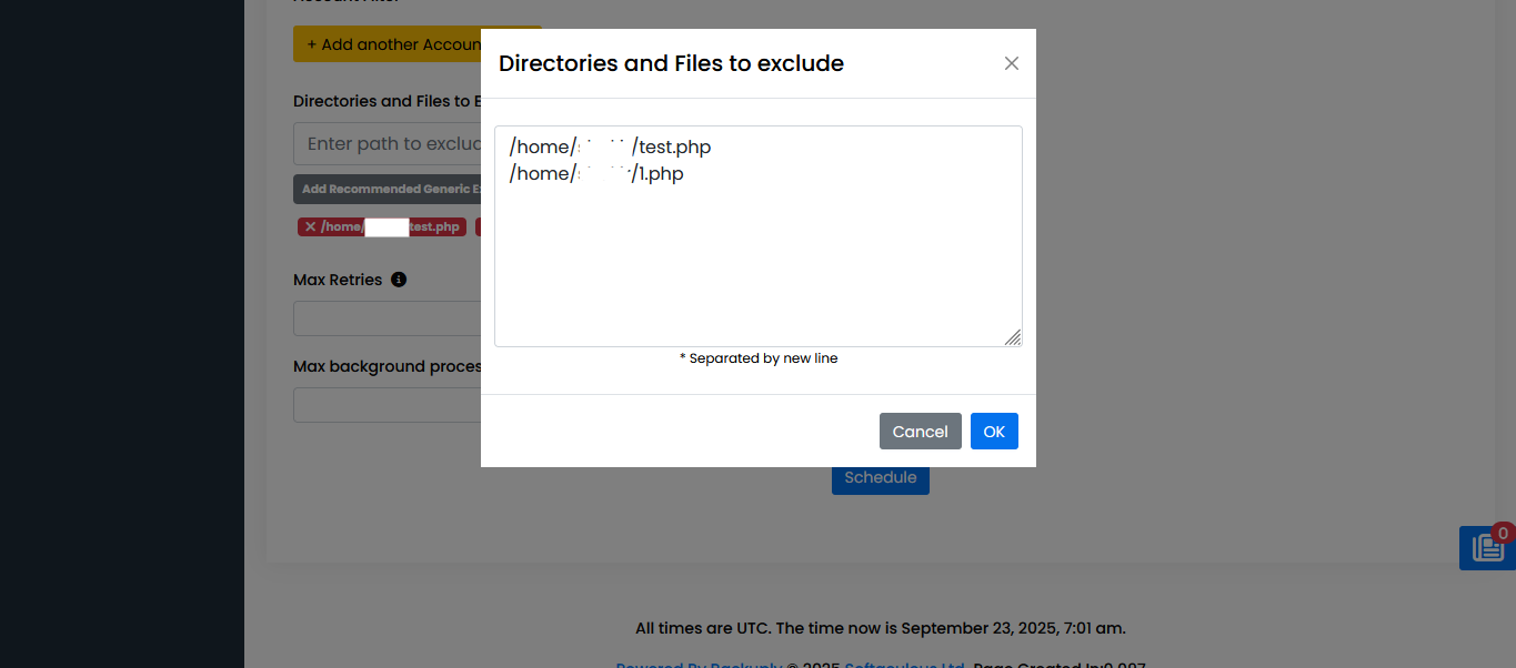 If you want to exclude predefined directories, click on Add Recommended Generic Excludes and Add Recommended WordPress Excludes.