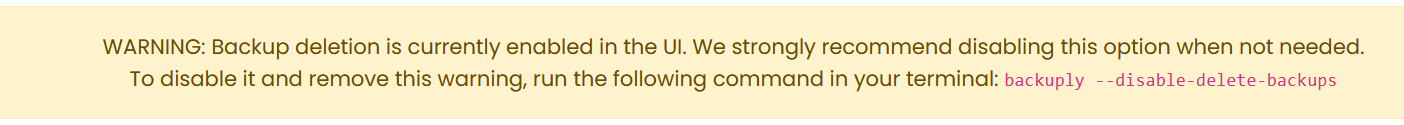 Disables the option to delete backups from the Backuply UI to prevent accidental data loss.