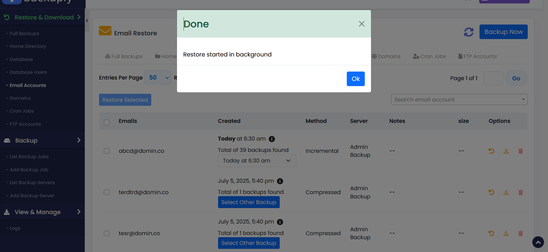 This guide will show how you can restore one or multiple Email Accounts from Backuply Enduser panel.