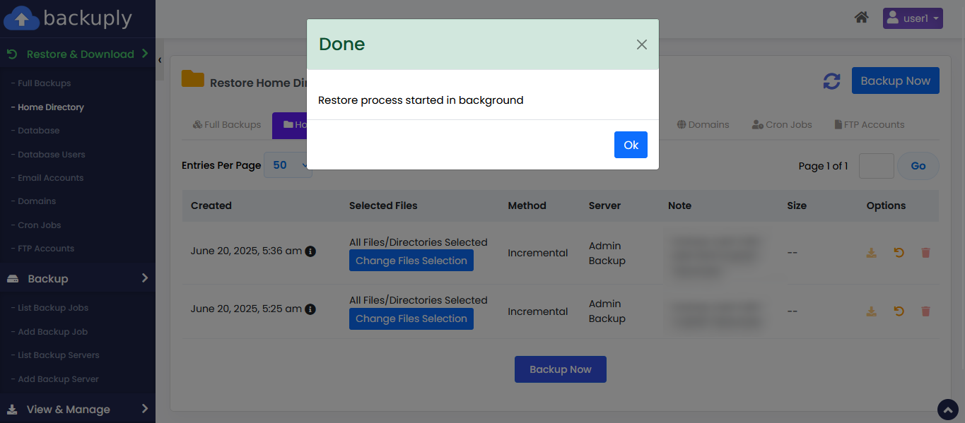 That's it... you can now check Restore process's logs from the Backuply Enduser Panel > View & Manage >  Logs wizard.