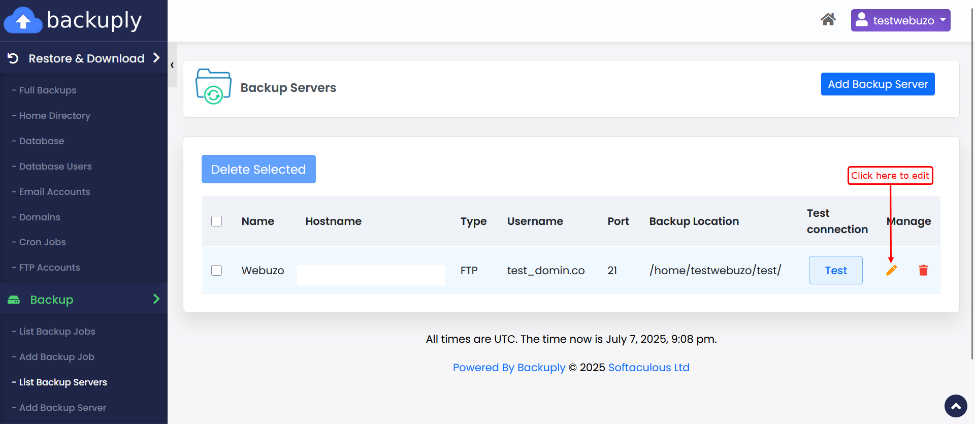 3) Clicking the Edit button allows you to modify the details of an existing backup server.